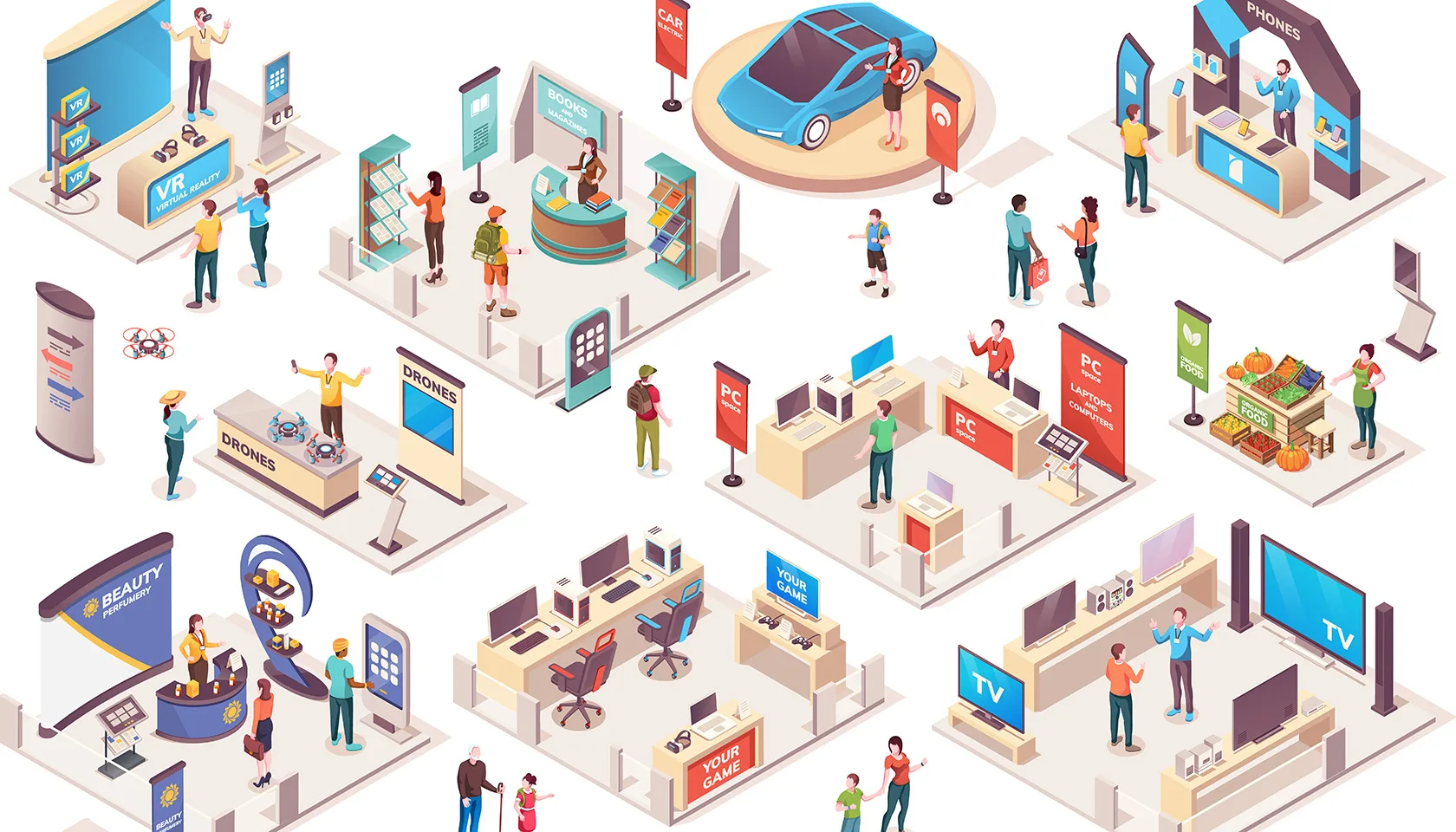 - Tablets or Interactive Monitors — let visitors explore your products in detail.