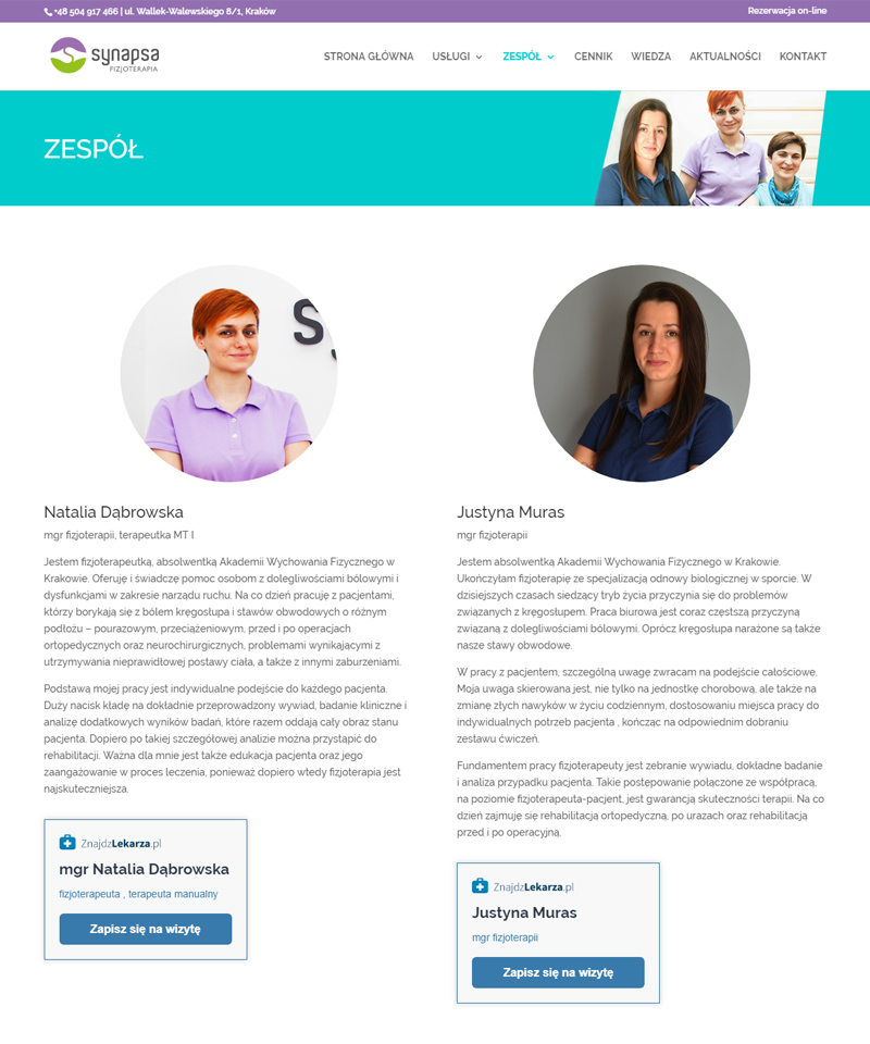 Synapsa Fizjoterapia – realizacja strony internetowej gabinetu fizjoterapii